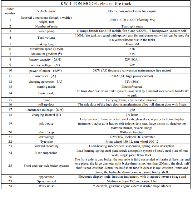Truk pemadam kebakaran listrik MODEL KW-1 TONIni merupakan pelengkap penting bagi sistem proteksi kebakaran tradisional, terutama cocok untuk pemadaman kebakaran awal, lingkungan sempit, dan pencegahan harian. Ramah lingkungan, ekonomis dan praktis, dan cocok untuk promosi di komunitas, tempat indah, kawasan industri, dan skenario lainnya.